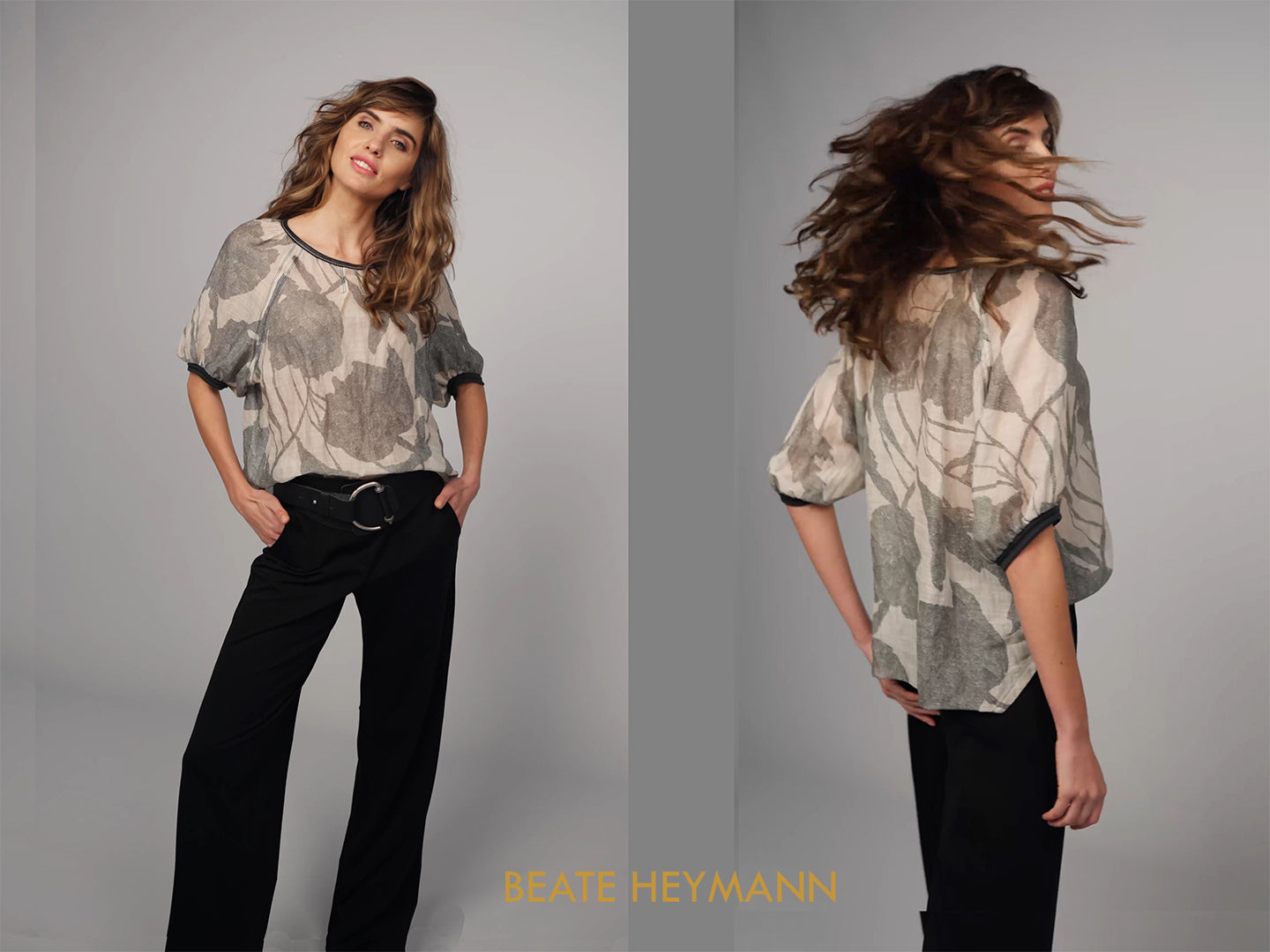 =======AVAILABLE TO PURCHASE IN STORE ONLY======== Beate Heymann linen and cotton mix straight leg trouser with a washed palm print. Features mock pocket trim on rear, square pockets...