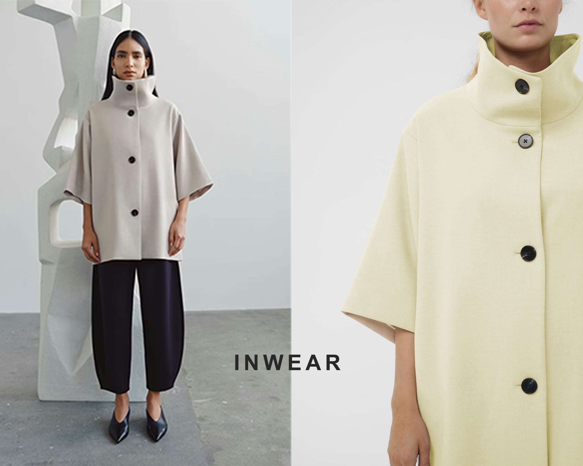 Inwear woven high funnel neck jacket with half sleeves. Features four large buttons and side pockets. REF: 30112218/300597 Holly COMPOSITION: 65% Polyester, 25% Viscose, 4% Elasthane, 3% Lyocell, 3% Wool ...