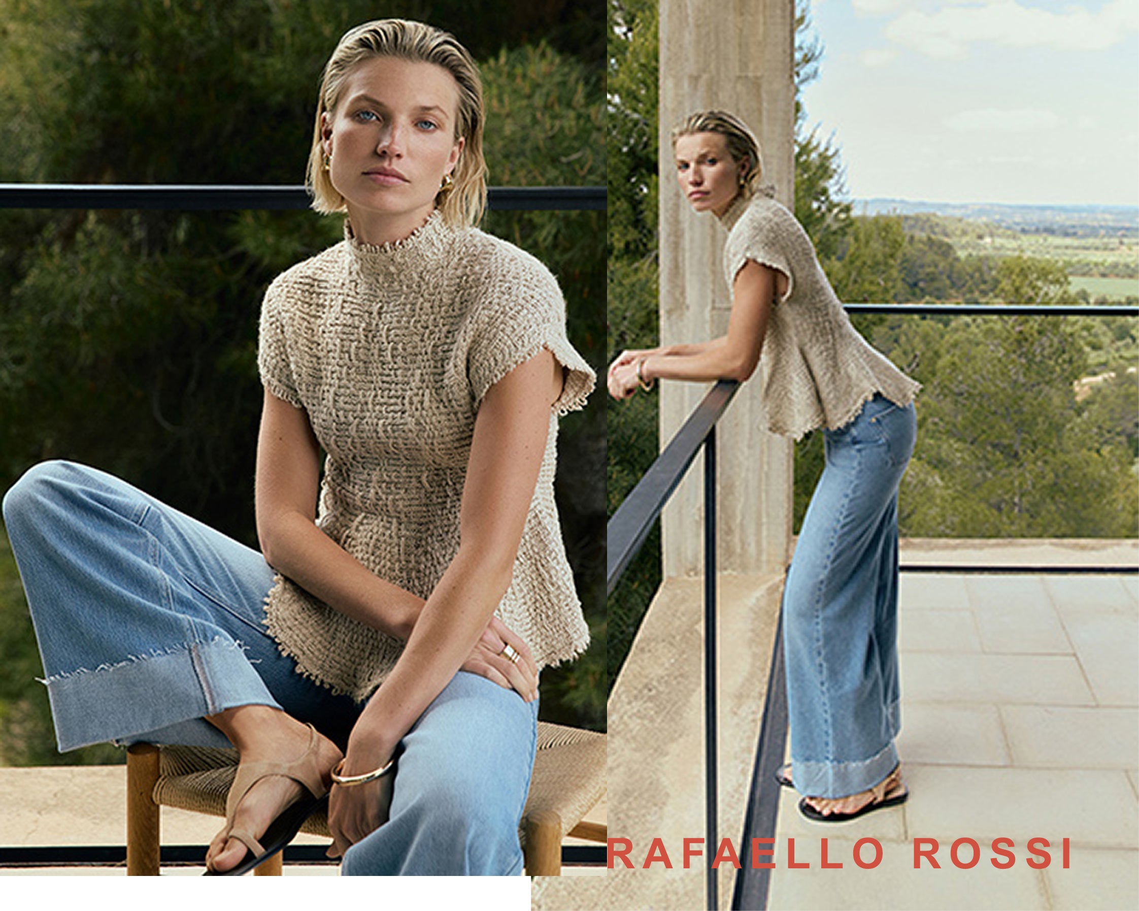 Raffaello Rossi soft, cotton and Lyocell mix jean. Features wide legs with a raw edge faux turn up and 5 pockets. REF: 202622/9382-820 SVENTY COMPOSITION: 62% Cotton, 38% Lyocell CARE:...