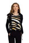 Beate Heymann animal print stretch top with contrast black jersey sleeves and rib jersey hem.