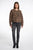 Rino & Pelle soft animal print, button down stretch jacket with collar and large, slightly angled pockets. Seam across chest and shoulder on the back, with a continuous row of 4 buttons underneath, running the length of the spine. Button tabs at sides and sleeve, belt loops on hem.