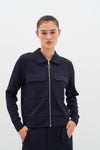 Inwear super soft Tencel bomber jacket with cuff and waistband. Features a ring zip and flap patch pockets.
