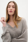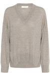 Inwear wool, fine knit V Neck sweater. Features a rib V, wide rib cuffs and Hi Lo hem with side slits.
