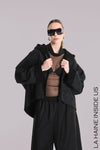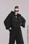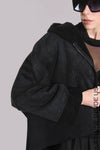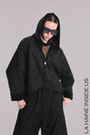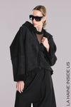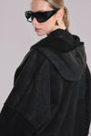 La Haine Inside Us Eco oversize suede jacket with a teddy inner. Features a hood, raw Hi Lo hem, seam detail on sleeves and full zip.