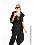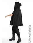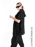 La Haine Inside Us oversize Eco suede sleeveless, open sided jacket with a teddy inner. Features a hood, double poppers on side and patch pockets.