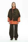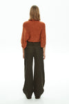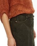 Malloni MLO jean with contemporary cross over front. Features internal front zip closure with button and pocket wrap front.