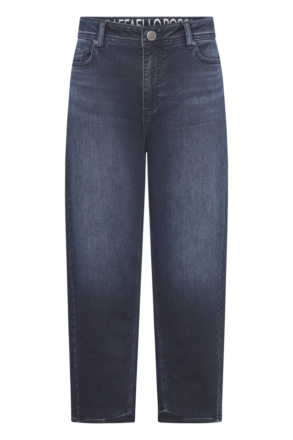Raffaello Rossi jean in a stretch lyocell cotton mix denim. Features a 7/8 leg with 5 classic jean pockets. Button and zip closure with belt loops.