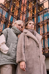 Rino & Pelle super soft faux fur coat with a detachable bib with high neck. BIb detaches by zip and coat can be worn without. Single breasted with vent pockets and lining.