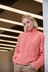 Rino & Pelle chunky cable knit sweater with a ribbed high neck. Features ribbed cuffs and Hi Lo hem.