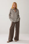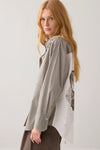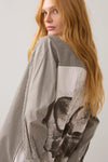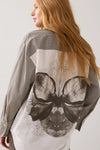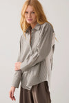 Summum classic button down, cotton shirt with a pinstripe front, shoulder and sleeve. Features a butterfly on white background on back and a double button cuff.