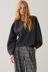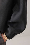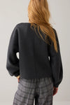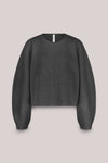 Summum long sleeve, box fit scuba top. Features rounded, tapered sleeves with pleat detail.
