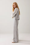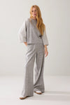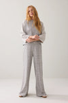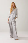 Summum wide leg trouser in herringbone flannel. Features a wide elasticated waistband and vent pockets on front.