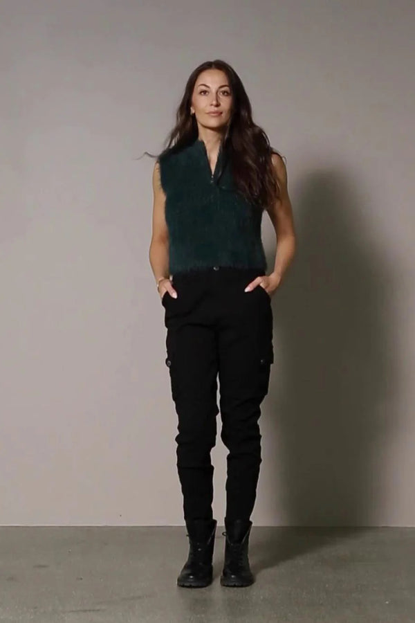 NU Denmark utilty trouser with a soft, stretch back and multi pockets. Features flap pockets with poppers on leg, front anfd back pockets.
