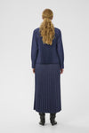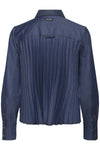 Inwear viscose mix, denim look shirt with a pleated back. Features one patch pocket on front and deep cuff with three small buttons.