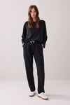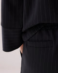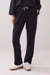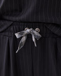Summum tapered, soft scuba pinstripe trouser with elasticated waist and drawstring.