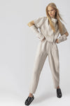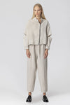 Lotus Eaters linen box jacket with a detachable half sleeve and shallow funnel neck. Features a contrast asymetric zip and seam detail.